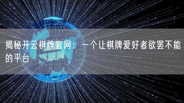 揭秘开云棋牌官网:一个让棋牌爱好者欲罢不能的平台